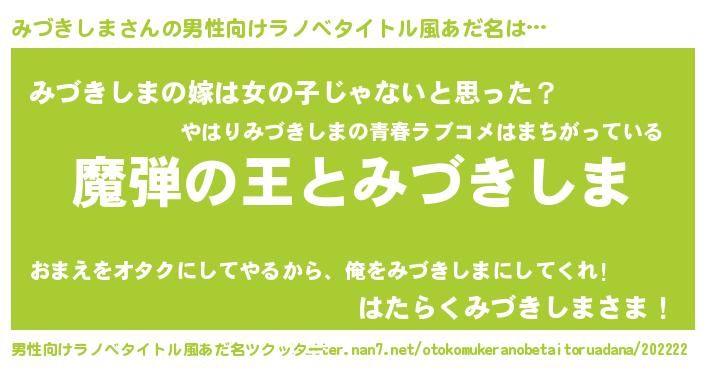| 意味不明あだ名 | 『住所不定無職みづきしま(98歳)』 |
