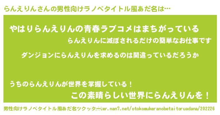 | 女子向けラノベタイトル風あだ名 | 『らんえりんは平凡を望む』 |