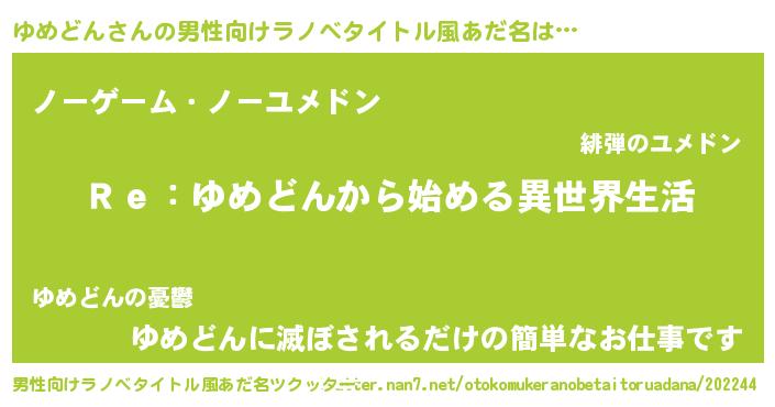 | 意味不明あだ名 | 『自称ゆめどん』『ペロリンゆめどん』 |