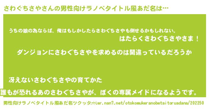 | 女子向けラノベタイトル風あだ名 | 『さわぐちさやは平凡を望む』 |