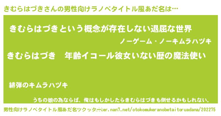 | 女子向けラノベタイトル風あだ名 | 『きむらはづきの玉の輿計画!』 |