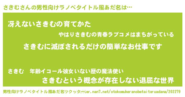 | 胡散臭い通販商品みたいなあだ名 | 『前代未聞の健康食品…その名も「さきむ」』 |