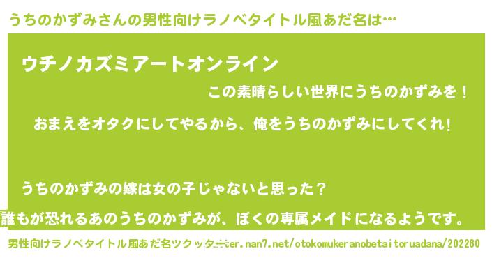 | 女子向けラノベタイトル風あだ名 | 『うちのかずみ夫妻のなれそめ』 |