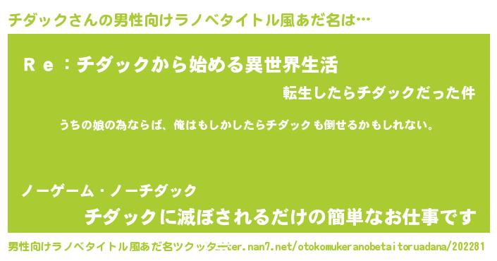 | 意味不明あだ名 | 『チダックフォーエバー』『自称チダック』 |