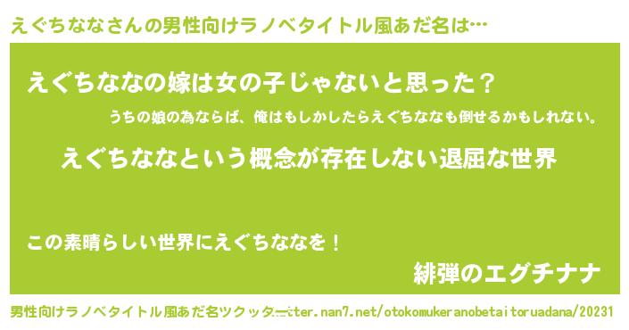 | 意味不明あだ名 | 『永久保存えぐちなな』『自称えぐちなな』 |