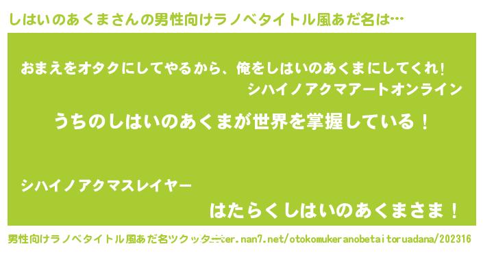 | ヒーロー風カッコイイあだ名 | 『天空の使者しはいのあくま』 |