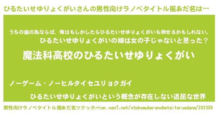 | 女子向けラノベタイトル風あだ名 | 『ひるたいせゆりょくがいアンティーク』 |