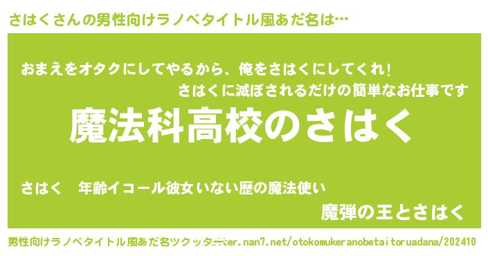 | 女子向けラノベタイトル風あだ名 | 『さはくなんてお断りですっ。』 |