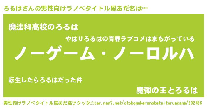 ろるはさんの男性向けラノベタイトル風あだ名をツクッター!