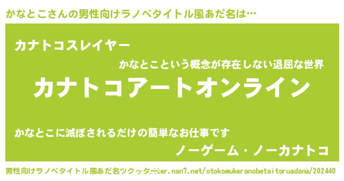 | ファンタジー風あだ名 | 『カナフェル』『ユリカナヴァット』 |