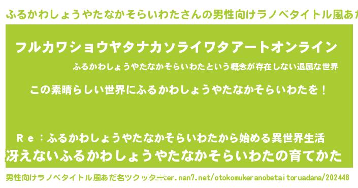 | 胡散臭い通販商品みたいなあだ名 | 『あなたにだけ特別に提供する100年もののヴィンテージワイン…その名も「ふるかわしょうやたなかそらいわた」』 |
