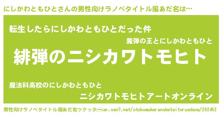 | ヒーロー風カッコイイあだ名 | 『スーパーニシカワトモヒト』 |