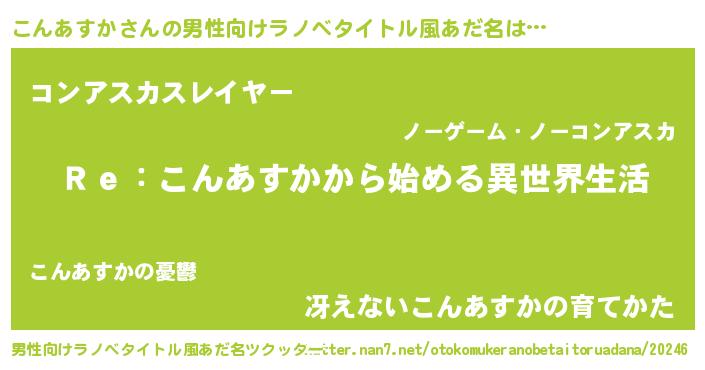 | 伝説のあだ名 | 『救世主となる占い師こんあすか』 |