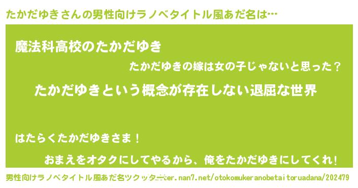 | ヘコむあだ名 | 『たかだゆき(笑)』『たか太郎』 |