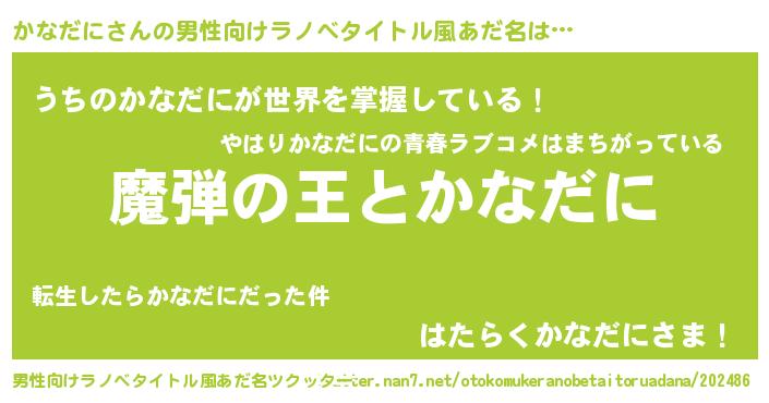 | 胡散臭い通販商品みたいなあだ名 | 『世界中を虜にした100年もののヴィンテージワイン…その名も「かなだに」』 |