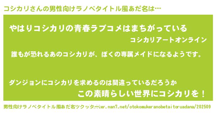 | 胡散臭い通販商品みたいなあだ名 | 『来世でも幸せになれる健康食品…その名も「コシカリ」』 |