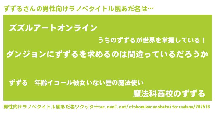 ずずるさんの男性向けラノベタイトル風あだ名をツクッター!