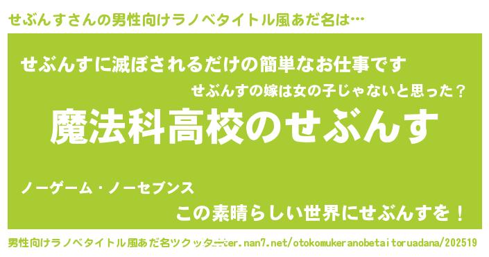 | 女子向けラノベタイトル風あだ名 | 『せぶんすなんてお断りですっ。』 |