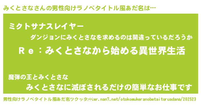 | 女子向けラノベタイトル風あだ名 | 『闇のみくとさな』 |