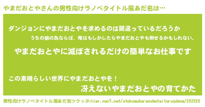 | 女子向けラノベタイトル風あだ名 | 『横柄やまだおとやと宰相陛下』 |