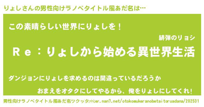 | 女子向けラノベタイトル風あだ名 | 『りょしストレイドッグス』 |