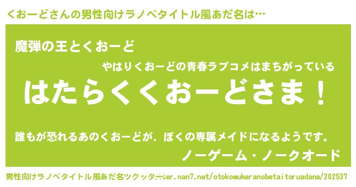 | 意味不明あだ名 | 『住所不定無職くおーど(62歳)』 |