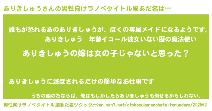| ヒーロー風カッコイイあだ名 | 『幻影騎士アリ』『ネオアリキシュウ』 |