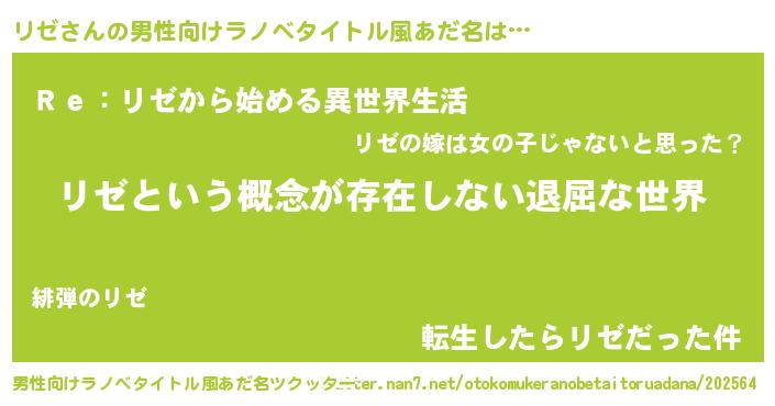 | 女子向けラノベタイトル風あだ名 | 『異世界で失敗しない100のリゼ』 |