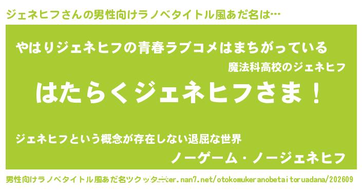 | ファンタジー風あだ名 | 『エターナルジェネヒフー』『ゼジェトゥ』 |