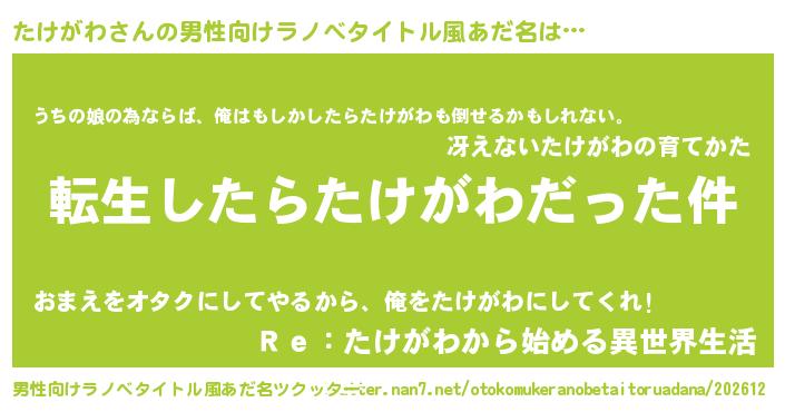 | 意味不明あだ名 | 『なめこ科たけがわ属』『自称たけがわ』 |