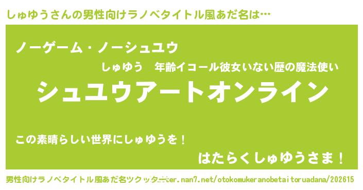 | 女子向けラノベタイトル風あだ名 | 『しゅゆう姫と円卓の騎士』 |