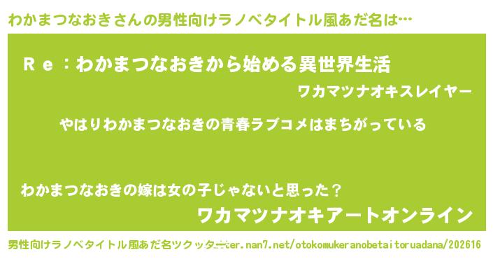 | 女子向けラノベタイトル風あだ名 | 『わかまつなおき伯爵の花嫁』 |
