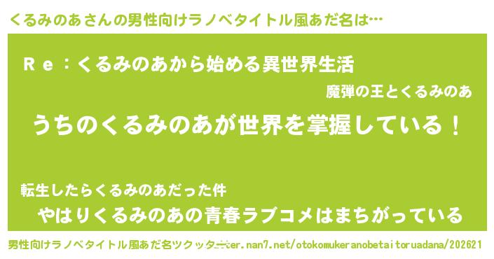 | 意味不明あだ名 | 『自称くるみのあ』『ペロリンくるみのあ』 |