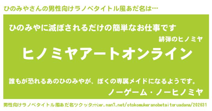 | 女子向けラノベタイトル風あだ名 | 『誰かこのひのみやを説明してください! ~契約から始まるウェディング~』 |