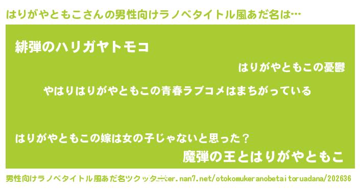 | 女子向けラノベタイトル風あだ名 | 『はりがやともこの雑貨屋さん』 |