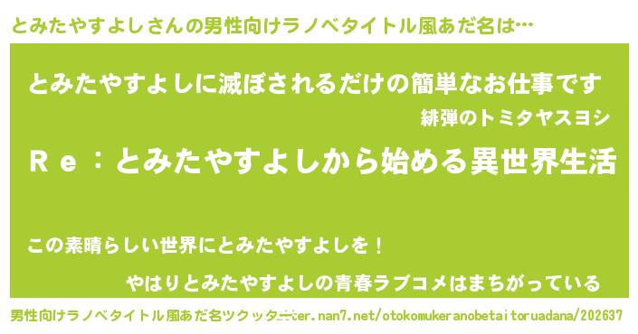 | 女子向けラノベタイトル風あだ名 | 『とみたやすよしストレイドッグス』 |