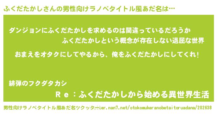 | 女子向けラノベタイトル風あだ名 | 『ふくだたかし夫妻のなれそめ』 |