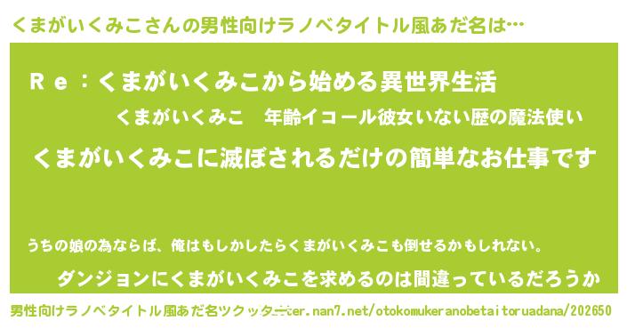 | 意味不明あだ名 | 『自称くまがいくみこ』 |