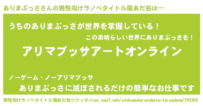 | 女子向けラノベタイトル風あだ名 | 『誰かこのありまぶっさを説明してください! ~契約から始まるウェディング~』 |