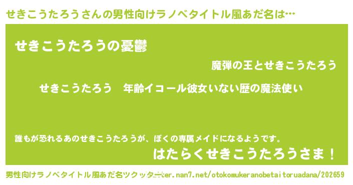 | 女子向けラノベタイトル風あだ名 | 『せきこうたろうの玉の輿計画!』 |