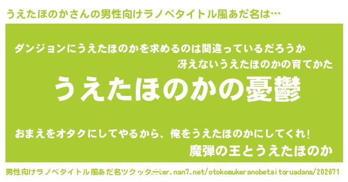| 胡散臭い通販商品みたいなあだ名 | 『必ず成功する霊験あらたかなお札…その名も「うえたほのか」』 |