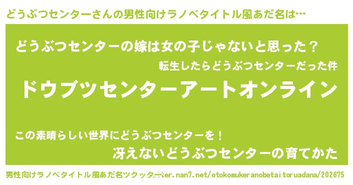 | 料理風あだ名 | 『節約★どうぶつセンターと油揚げの玉子丼』 |