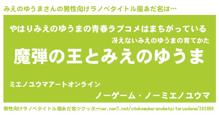 | 女子向けラノベタイトル風あだ名 | 『乙女ゲームの破滅フラグしかない悪役みえのゆうまに転生してしまった…』 |