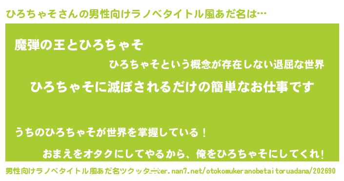 | 胡散臭い通販商品みたいなあだ名 | 『あなたにだけ特別に提供する世界で10本だけ現存している希少なブランデー…その名も「ひろちゃそ」』 |