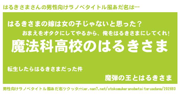 | 女子向けラノベタイトル風あだ名 | 『はるきさまなんてお断りですっ。』 |