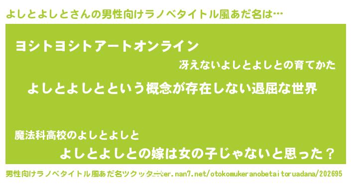 | 胡散臭い通販商品みたいなあだ名 | 『絶対に幸福をもたらす水素水…その名も「よしとよしと」』 |