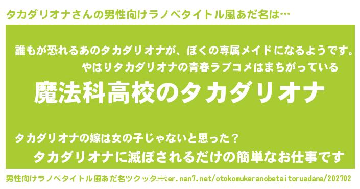 | ヒーロー風カッコイイあだ名 | 『ウルトラ戦士タカダリオナ』 |