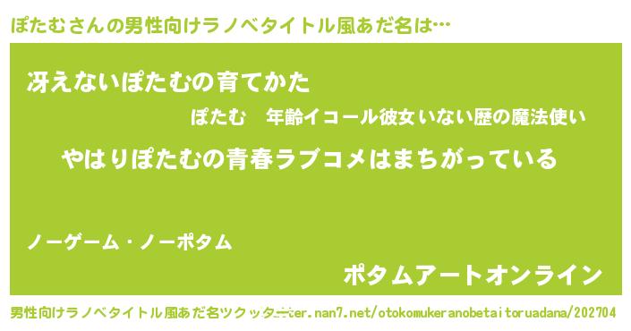 | 胡散臭い通販商品みたいなあだ名 | 『世界が平和になる高級そうな絵画…その名も「ぽたむ」』 |