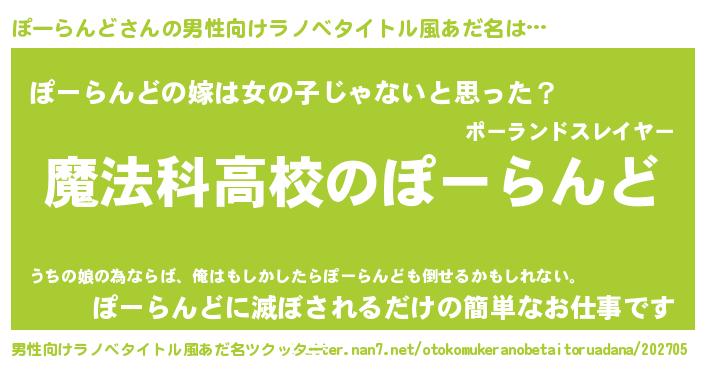 | 意味不明あだ名 | 『自称ぽーらんど』『ニラ科ぽーらんど属』 |