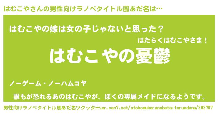 | 胡散臭い通販商品みたいなあだ名 | 『必ず成功する霊験あらたかなお札…その名も「はむこや」』 |